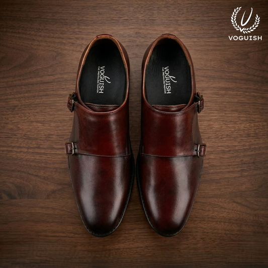 Voguish Double Monk Strap | Hand-Burnished Crust Leather Shoes - 019