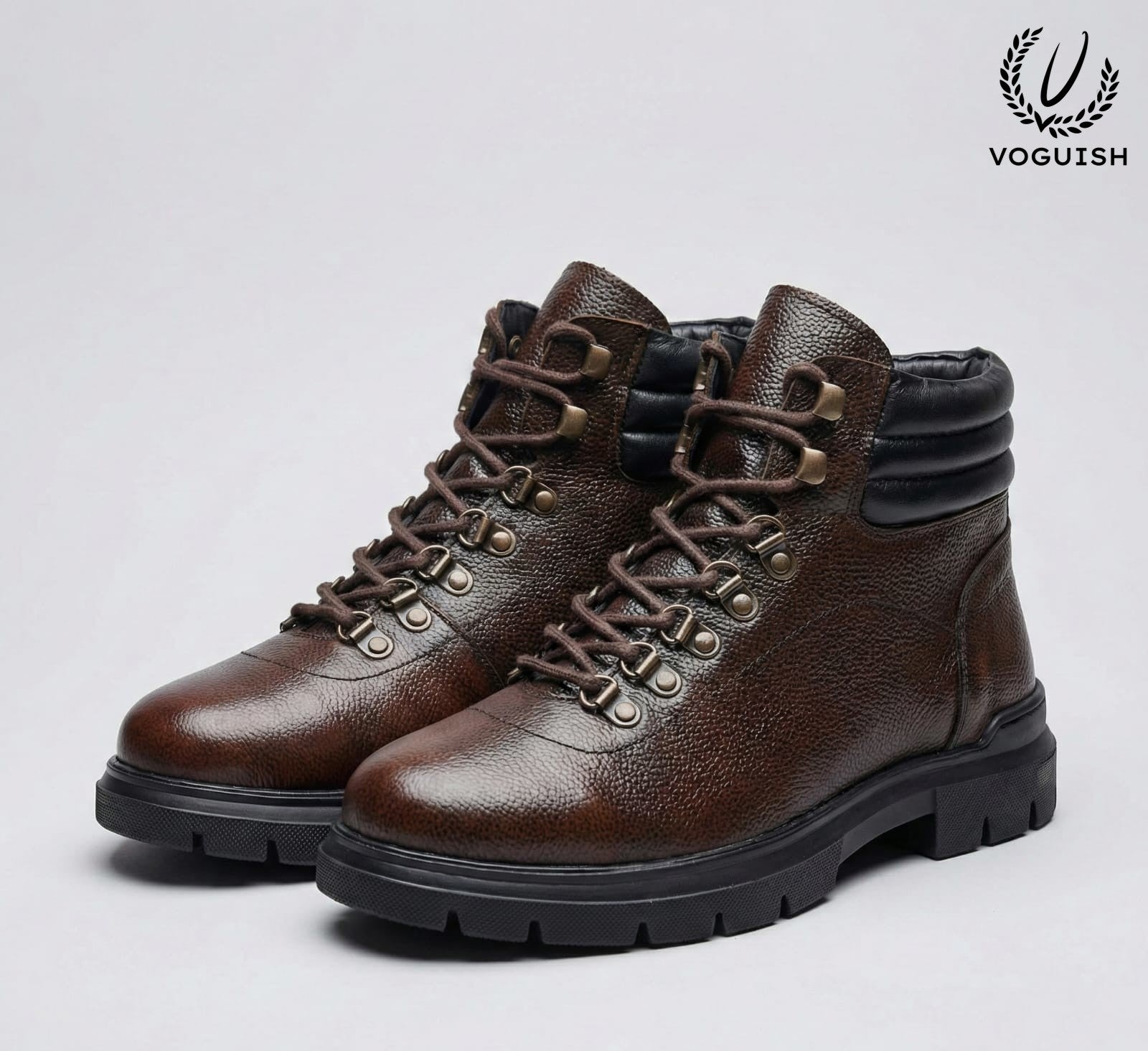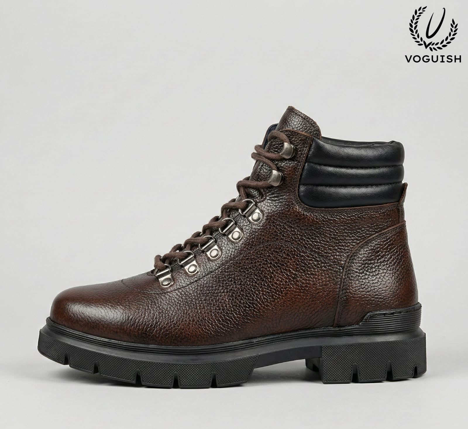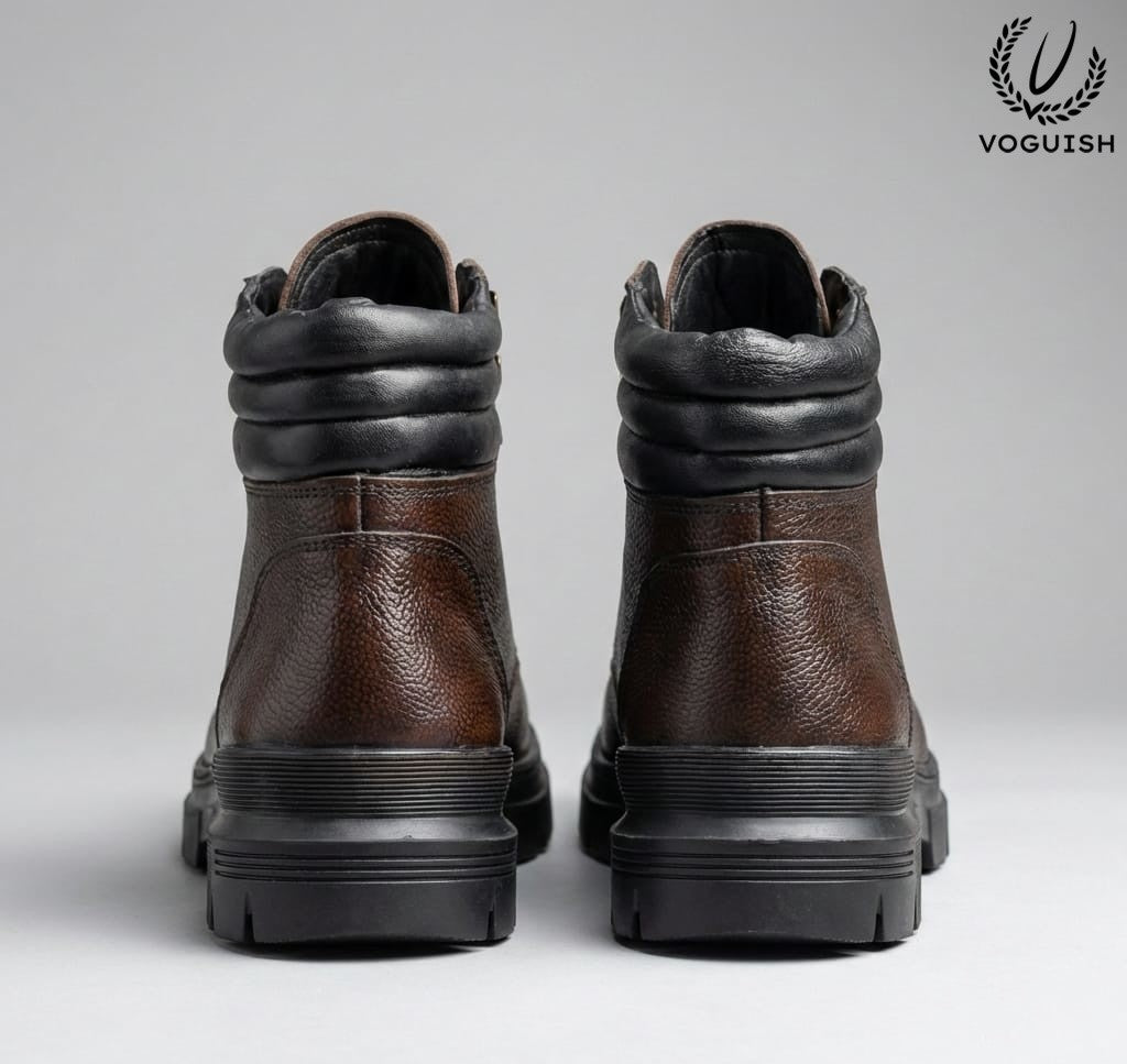 The Voguish Heritage Hiker combines the classic silhouette of a mountaineering boot with the refined details of premium urban footwear. The deep mahogany leather features a natural pebble grain that masks scuffs while adding a sophisticated depth to your outfit.