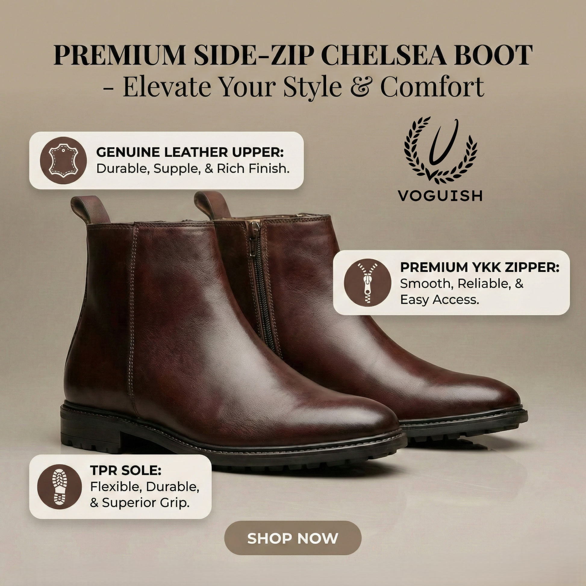 Easy Access: Features a sturdy rear pull-tab and a discreet side zipper for effortless wear.