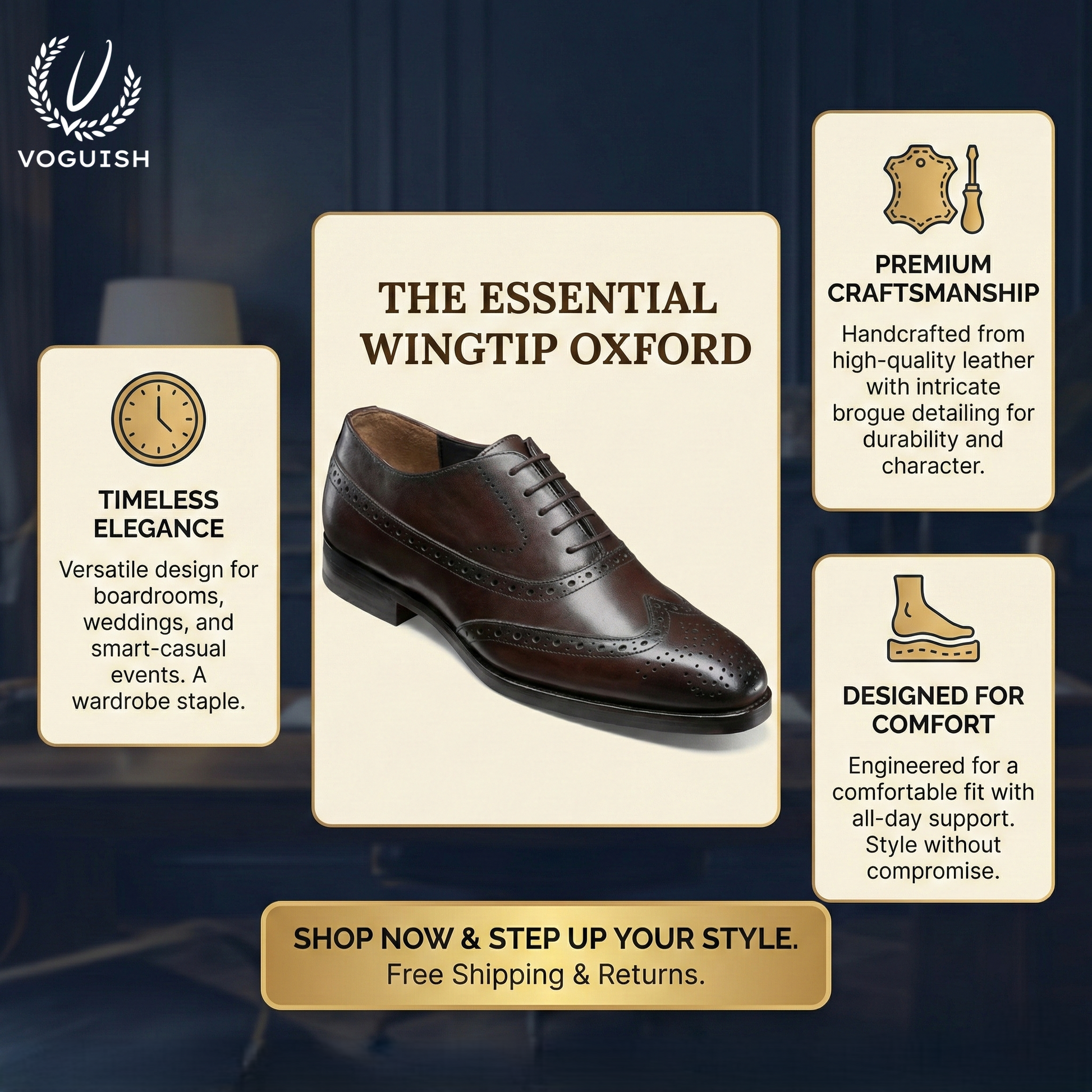 Classic Broguing: Intricate wingtip detailing and decorative perforations for a refined, heritage look.