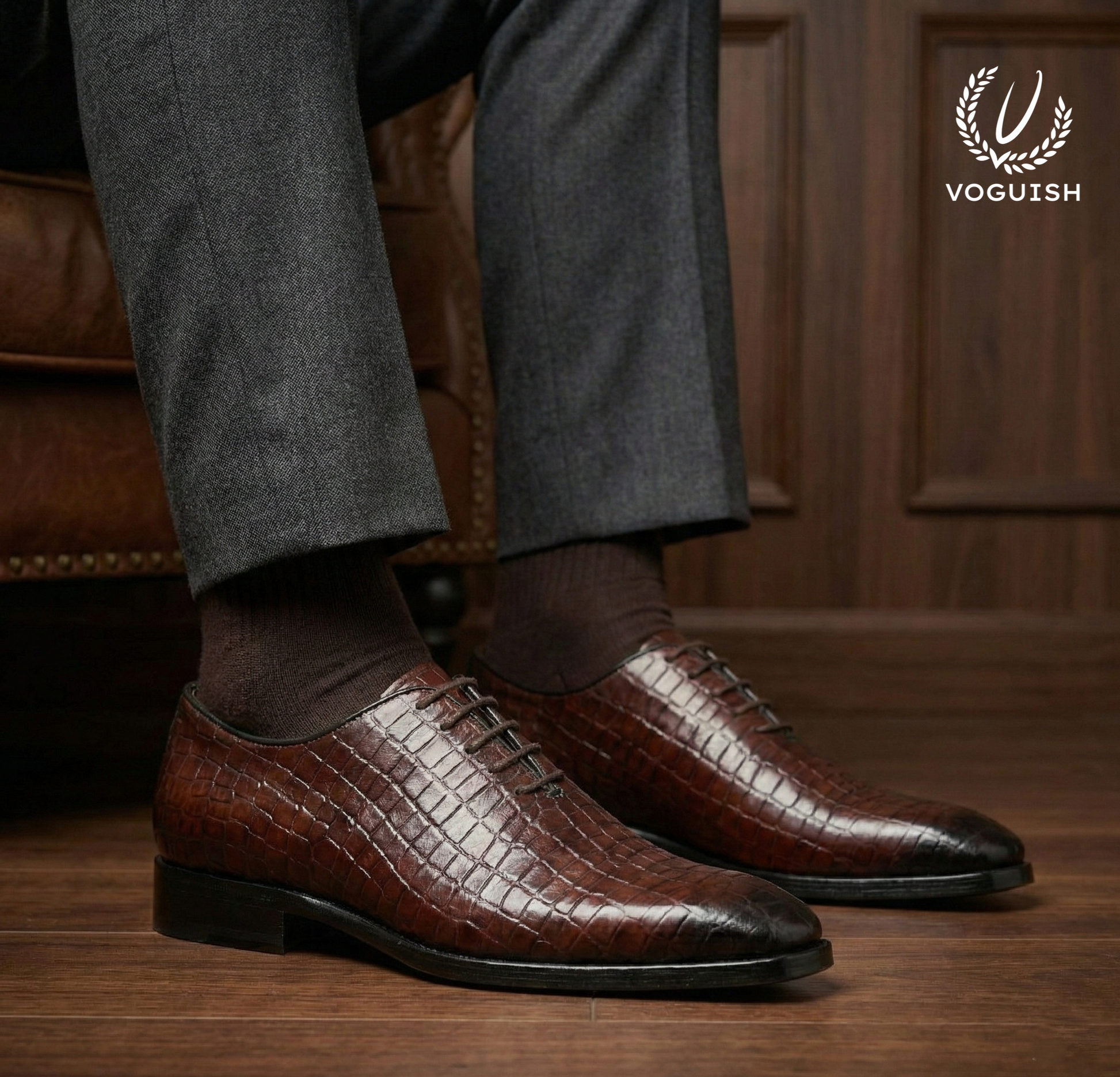 Step into a legacy of timeless sophistication. Crafted for the modern gentleman who appreciates the quiet luxury of "old money" aesthetics, this exquisite lace-up oxford is the epitome of refined taste. Meticulously constructed from premium genuine leather, it features a striking crocodile-embossed texture in a rich, burnished mahogany brown that commands presence in any room.