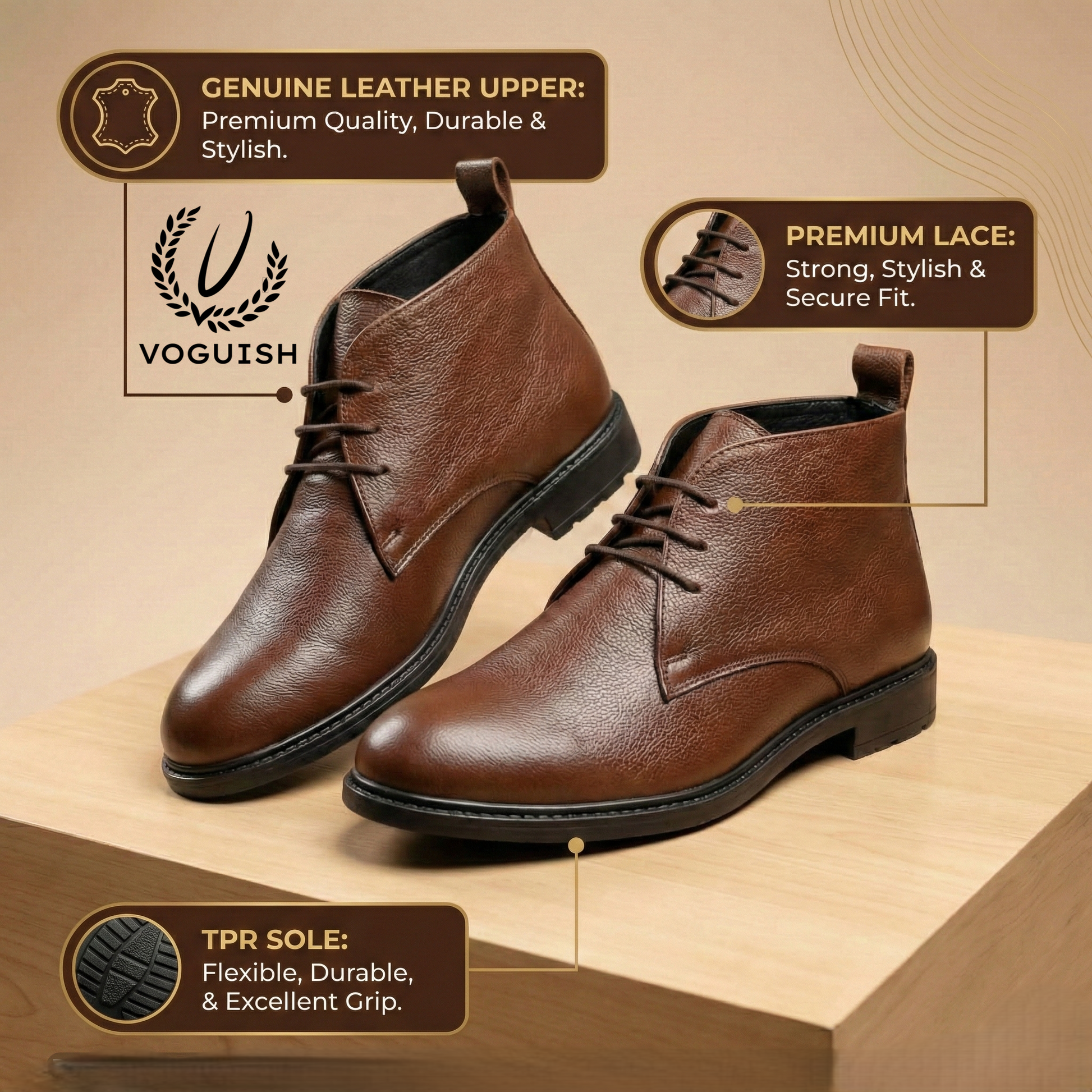 Elevate your everyday rotation. Crafted from premium pebbled leather, these mid-rise boots offer a tactile richness that only improves with age. Featuring a classic three-eyelet lacing system and a streamlined silhouette, they bridge the gap between rugged durability and refined elegance. The deep chestnut hue and subtle grain texture make them the perfect companion for dark denim or tailored chinos.