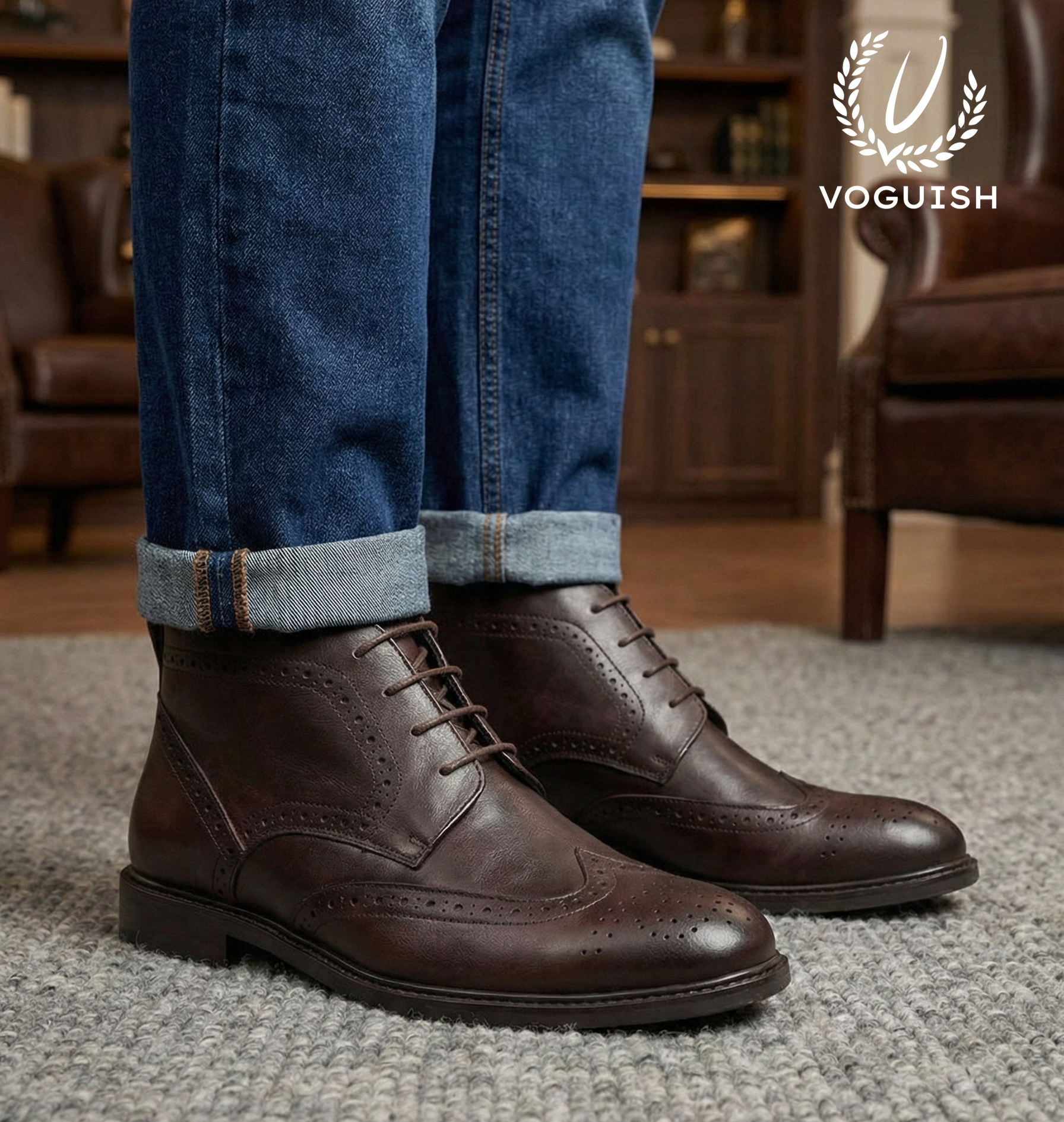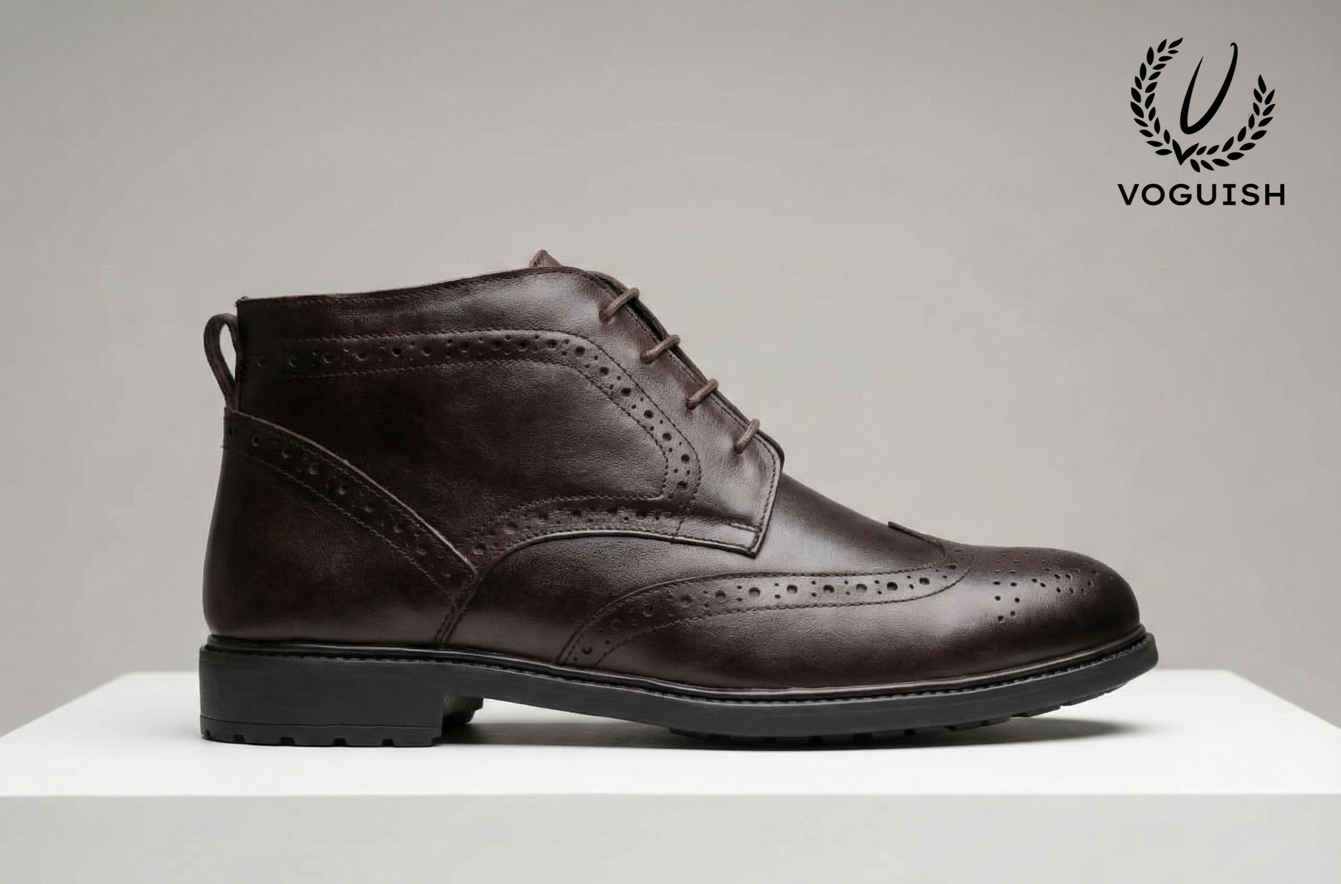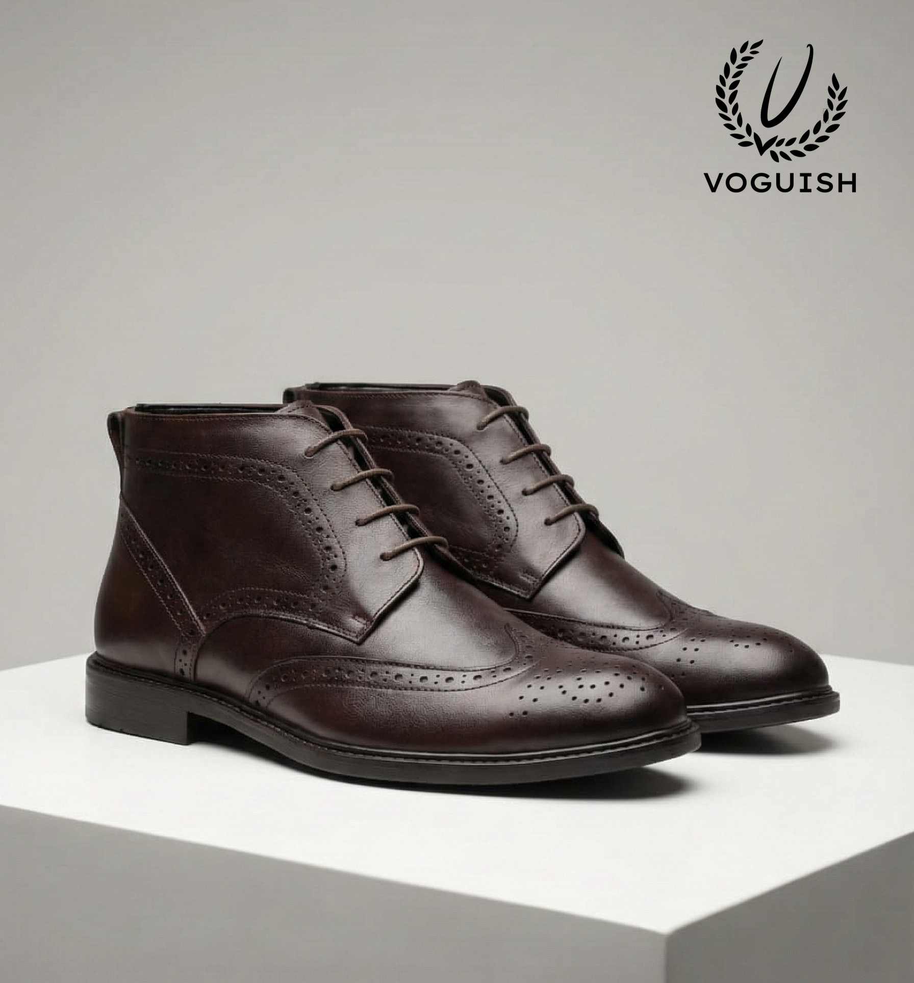 Timeless Craft, Modern Silhouette. Command the room with the Voguish Wingtip Chukka. Featuring intricate brogue detailing and a rich, hand-finished leather aesthetic, these boots offer a seamless transition from the boardroom to a gallery opening.