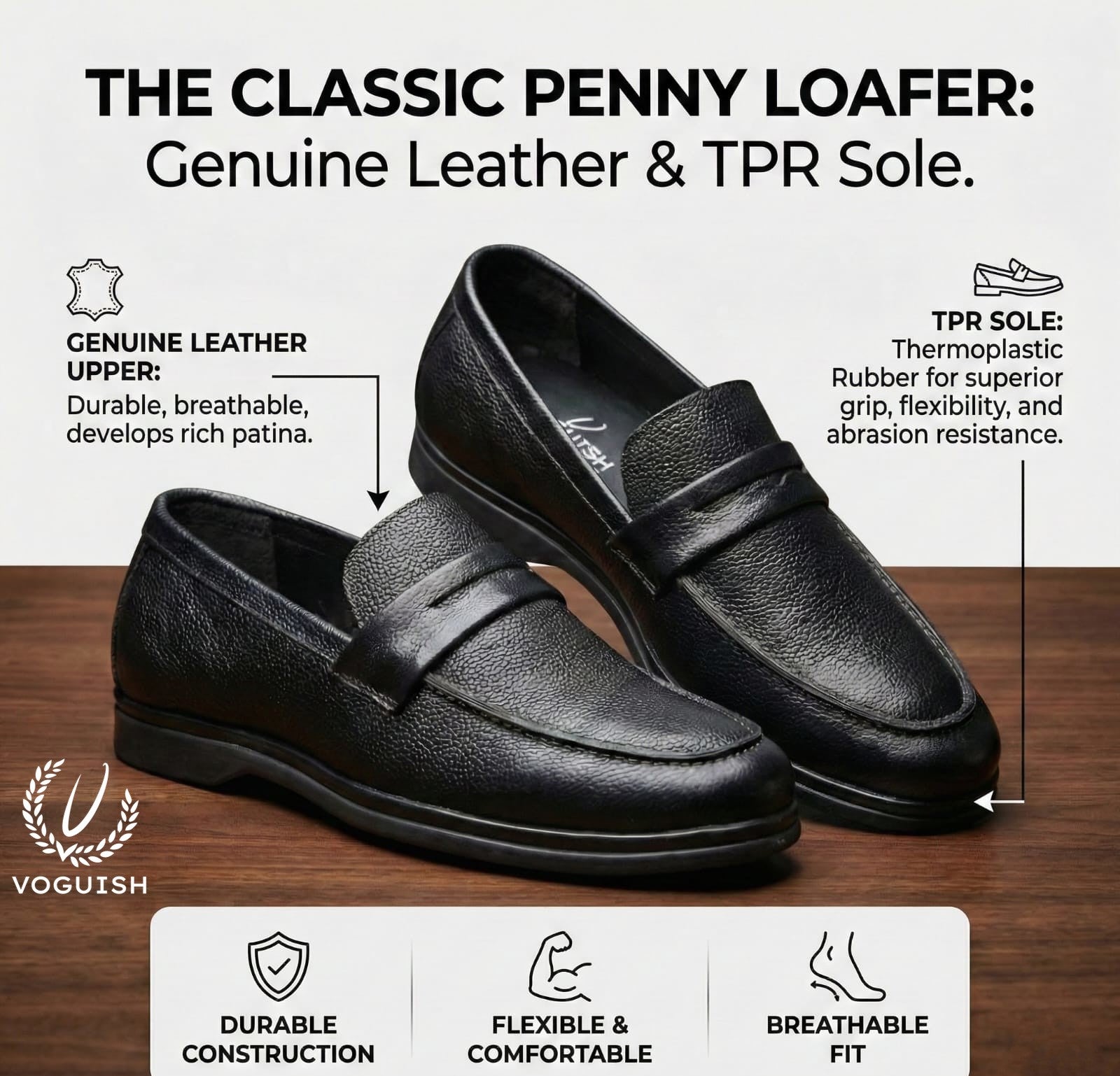 Elevate your professional and casual wardrobe with these sophisticated Textured Leather Penny Loafers by Voguish. Designed for the modern man who values both timeless style and everyday comfort, these shoes are a masterclass in understated elegance.