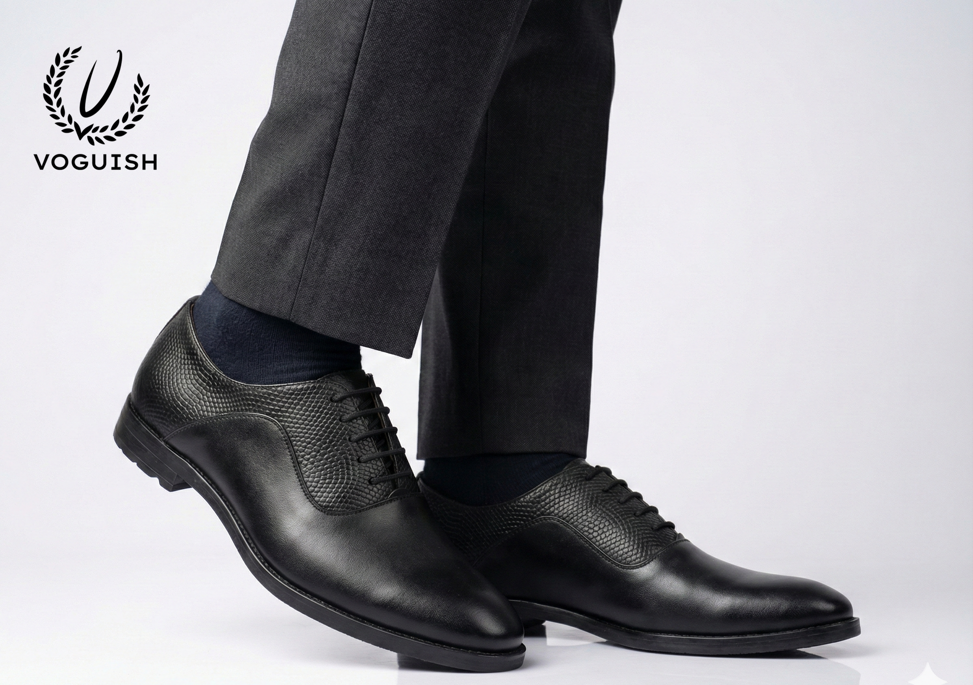 The shoe features a striking dual-finish upper: a buttery-smooth polished leather toe cap that transitions into a sophisticated, reptile-embossed textured vamp. This subtle interplay of textures adds depth and character without sacrificing elegance. Whether you are commanding the boardroom or attending a black-tie event, the sleek profile and closed lacing system ensure you put your best foot forward.