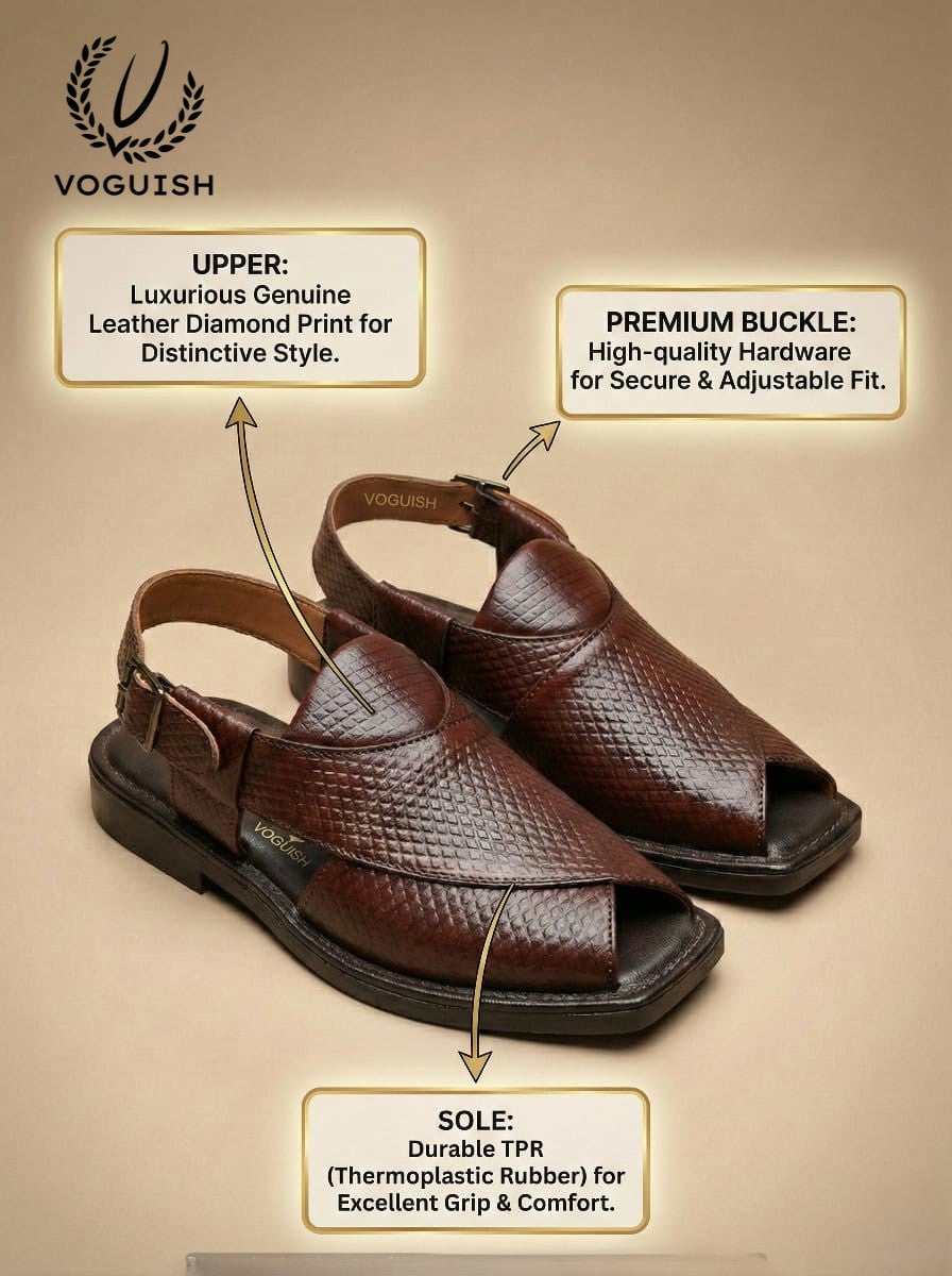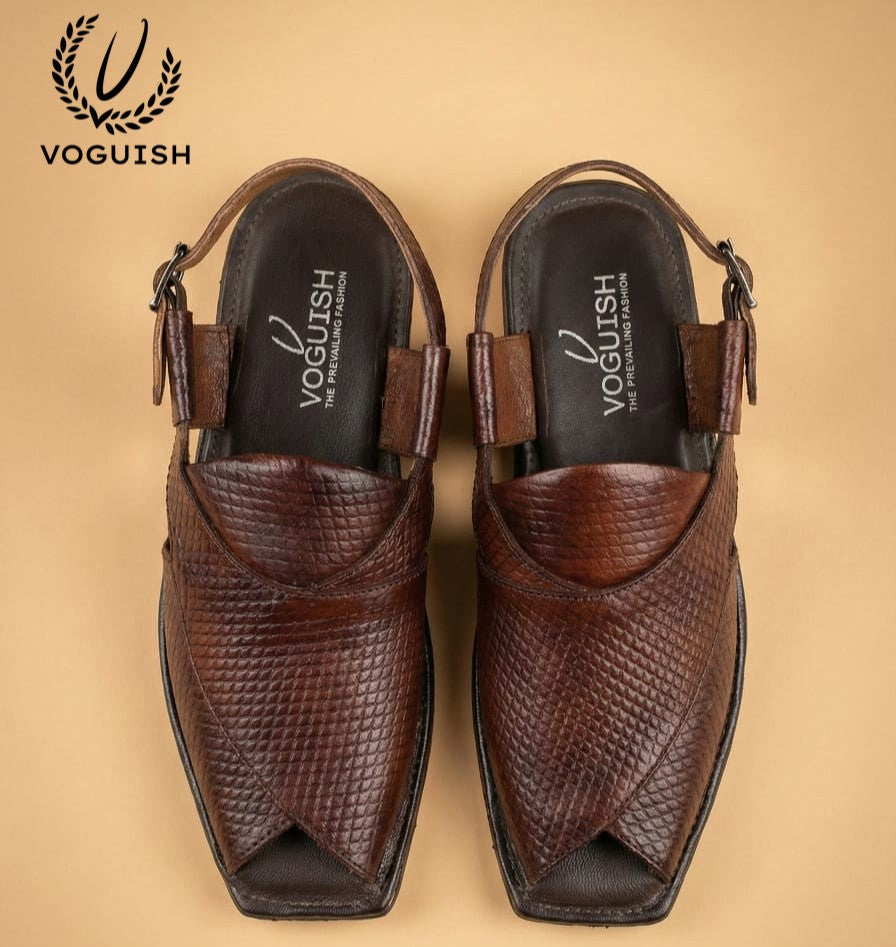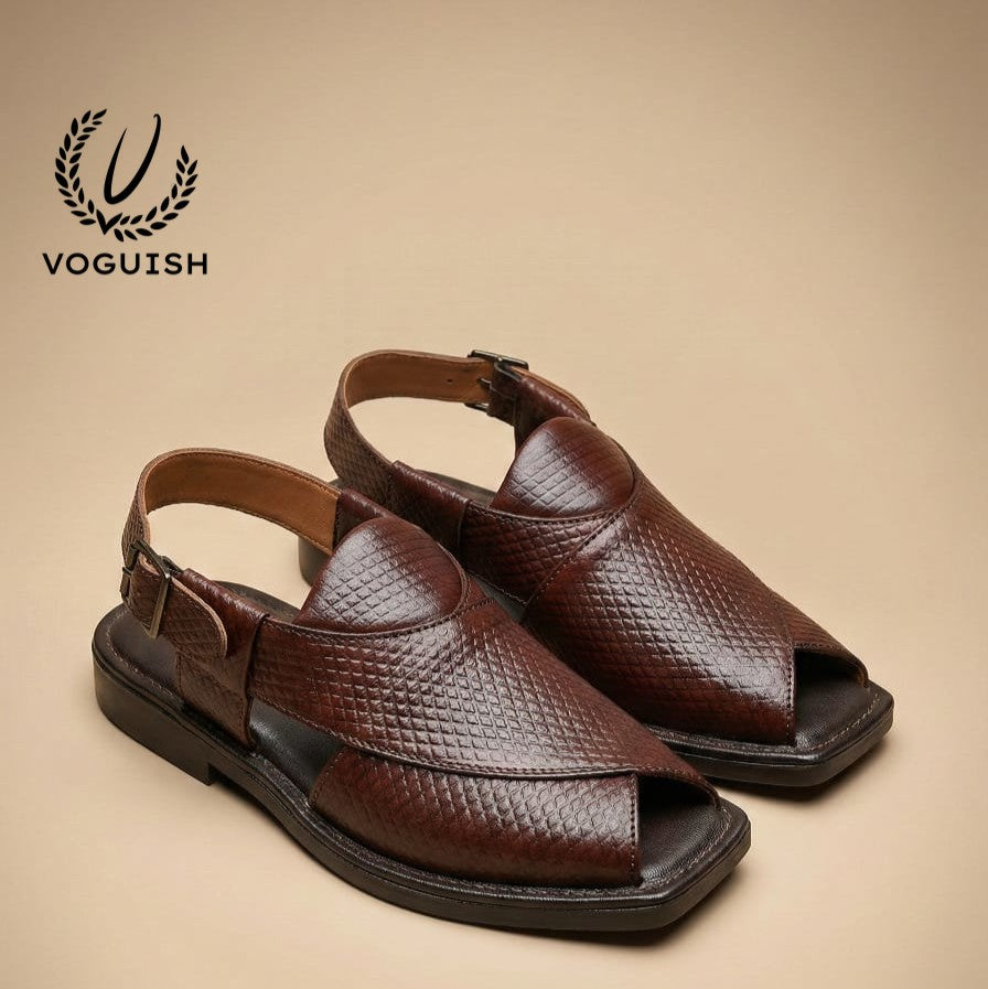 Elevate your ethnic and semi-formal wardrobe with a fusion of heritage and contemporary style. These Peshawari sandals are meticulously crafted for the man who appreciates the finer details. Featuring a unique diamond-textured finish on premium leather, this pair offers a distinctive look that sets you apart from the crowd.