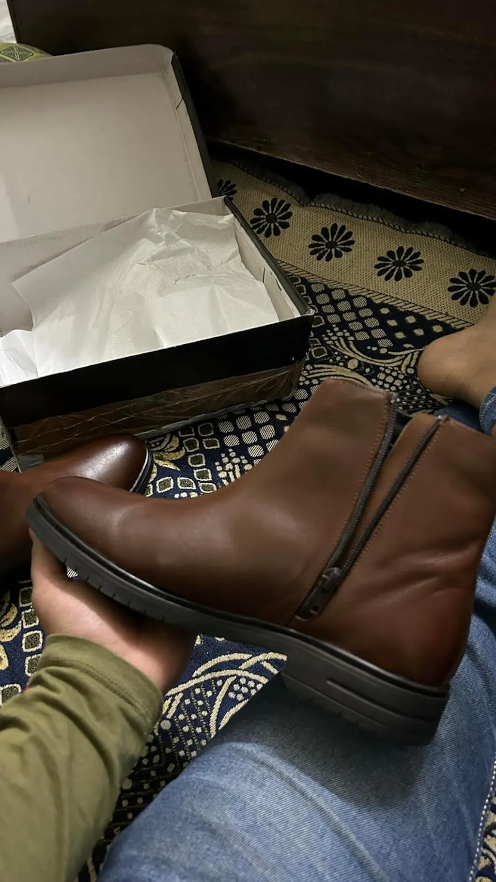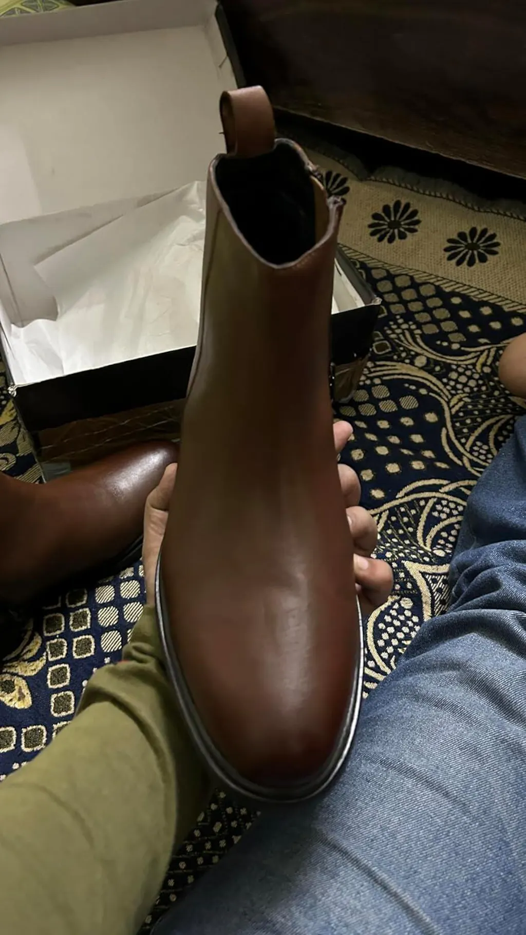 Ergonomic Pull Tabs: Reinforced leather rear tabs for added convenience and a touch of rugged detail.