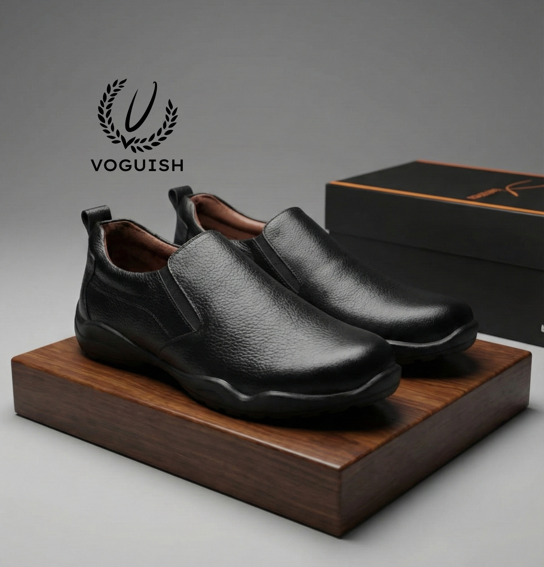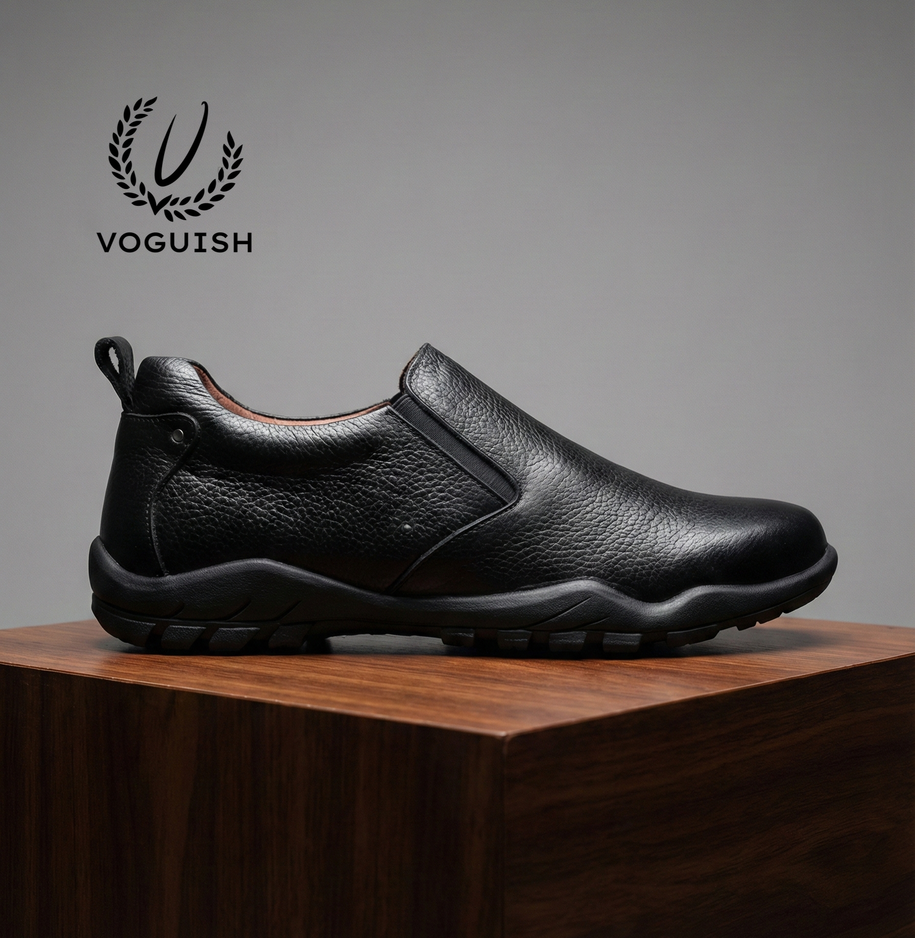 Crafted for the modern professional who refuses to sacrifice comfort for style, the Voguish Premium Slip-On combines a rugged, pebble-grain texture with a sleek, minimalist silhouette. Whether you're navigating the boardroom or a weekend gallery opening, these shoes provide a polished finish to any ensemble.